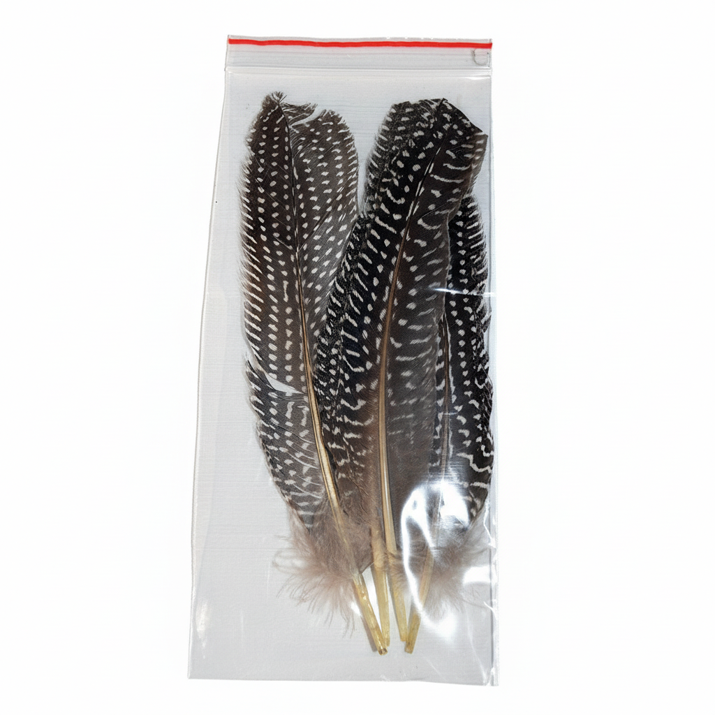 - .25 oz Guinea Plumage Feathers - natural speckled pattern ($8.99 value)